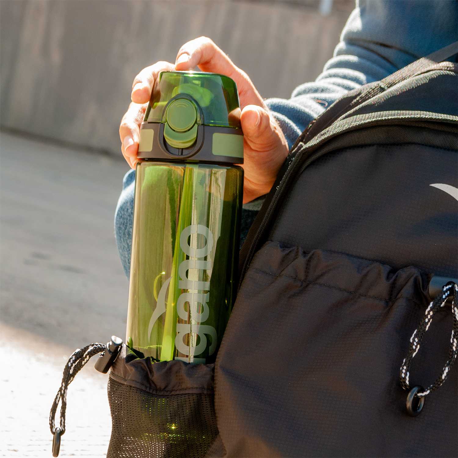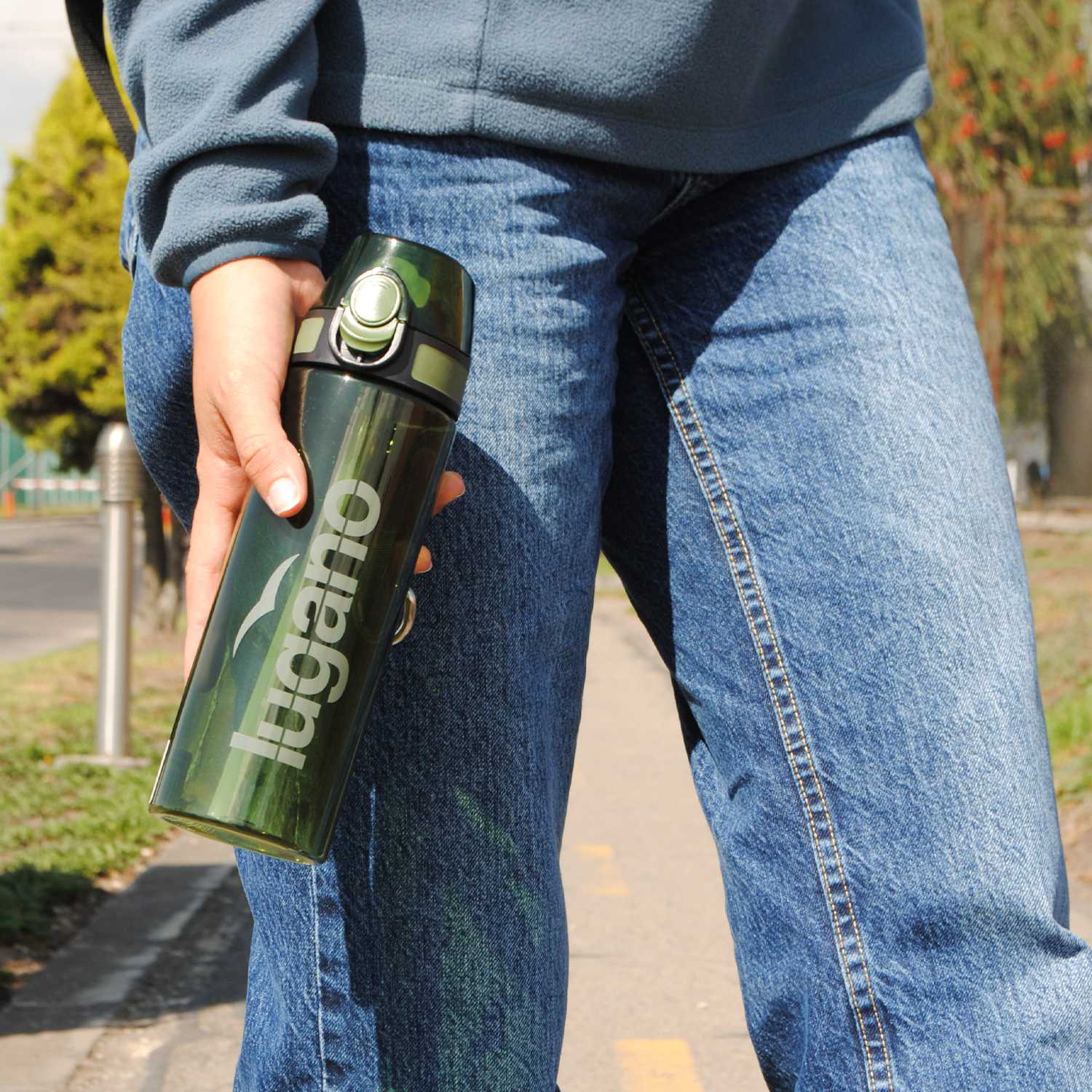 Botella con diseño formal de 650ml, libre de BPA, para bebidas frias, lavado a mano, con correa para mejor agarre, seguro anti derrame, incluye pitillo y seguro en la tapa.