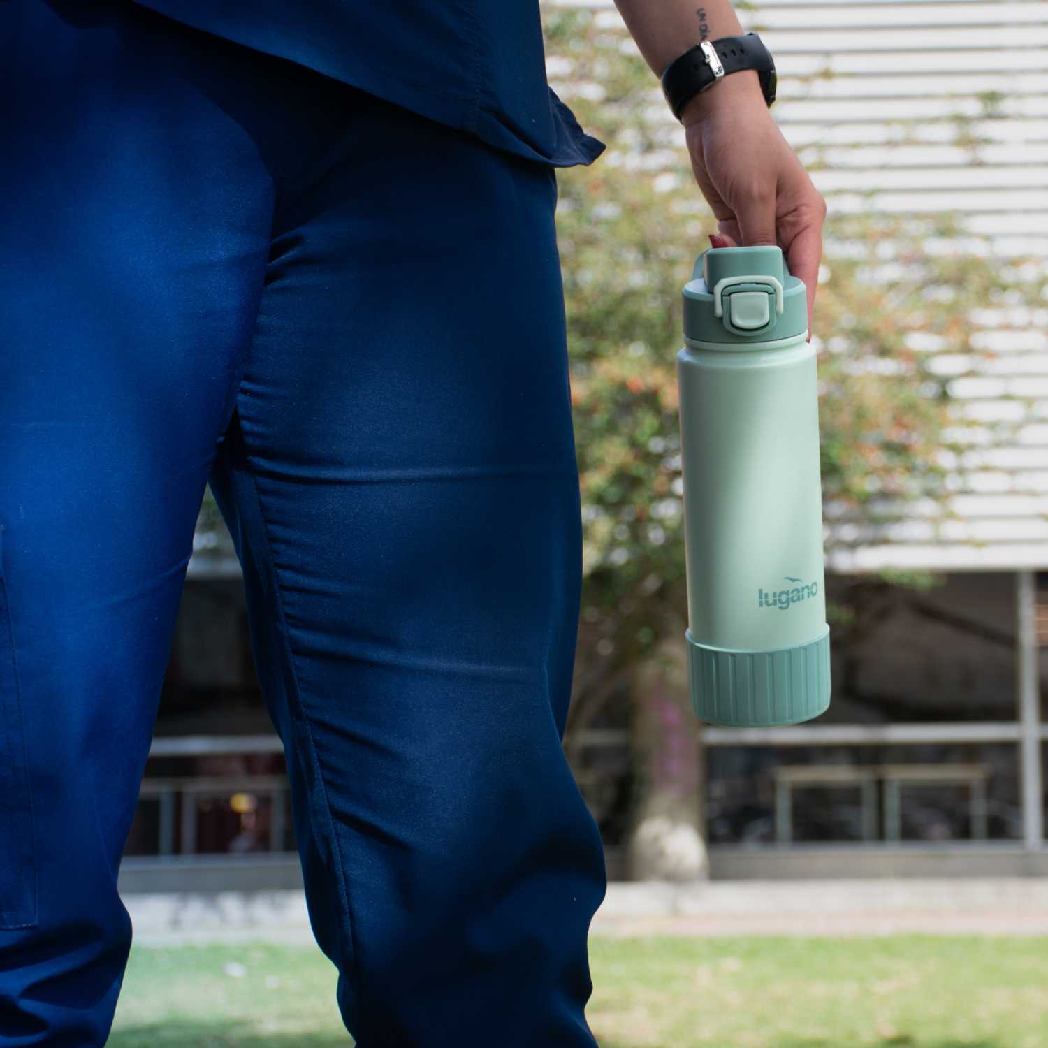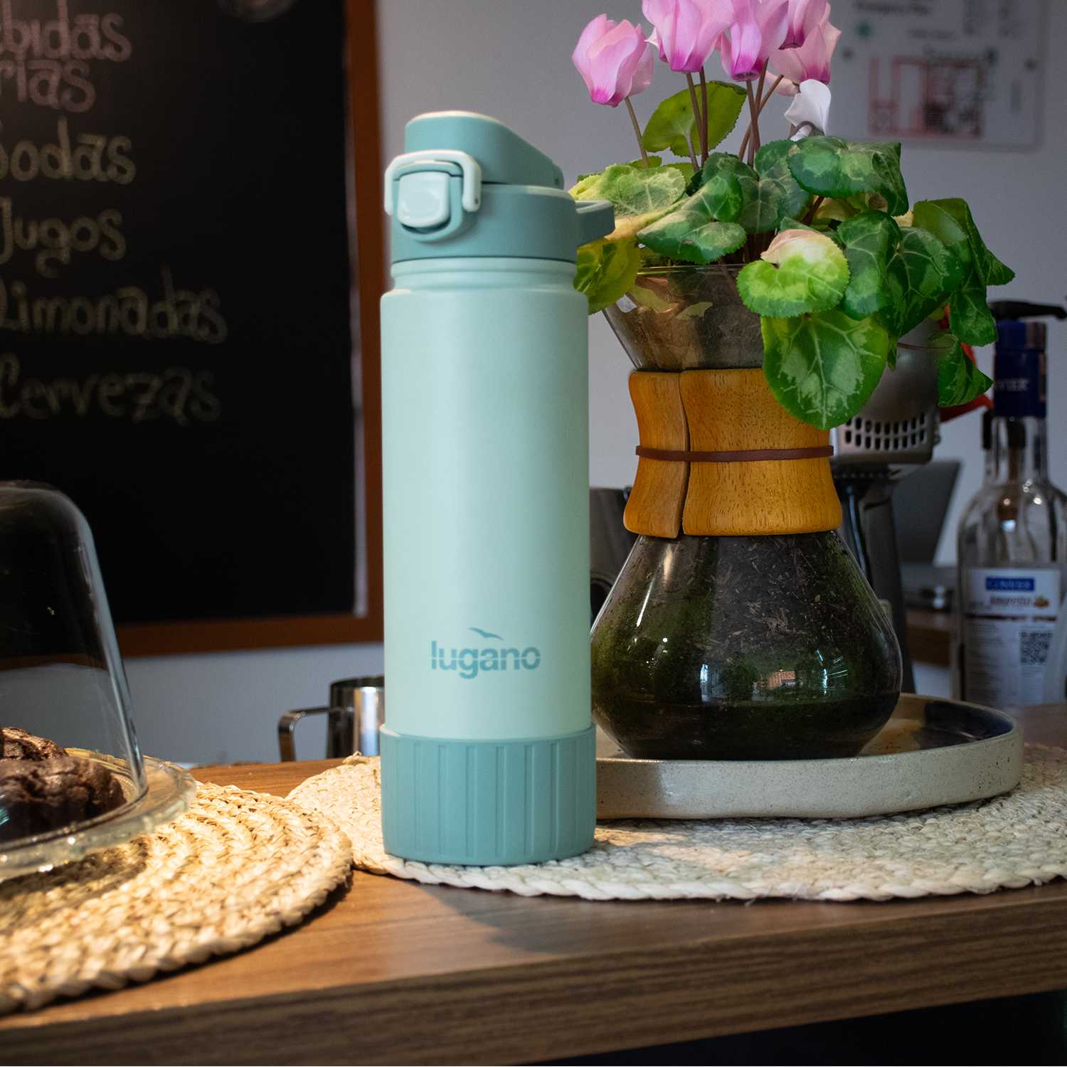 Botella Glacier en acero inoxidable con capacidad de 720 ml, a prueba de derrames, cuenta con aislamiento al vacío de doble pared para preservar la temperatura y frescura por más tiempo: 24 horas frío / 12 horas caliente. Libre de BPA, fabricada con materiales seguros para tu salud y respetuosos con el medio ambiente. Su espectacular tapa cuenta con un seguro para mayor protección y un mango siliconado para facilitar su transporte; además, su sistema de boquilla 2 en 1 te permite beber ya sea a tragos o sorbos mediante su pitillo extraíble y de fácil limpieza. En su base, cuenta con una protección de silicona que proporciona mayor fricción y seguridad sobre las superficies, evitando accidentes.