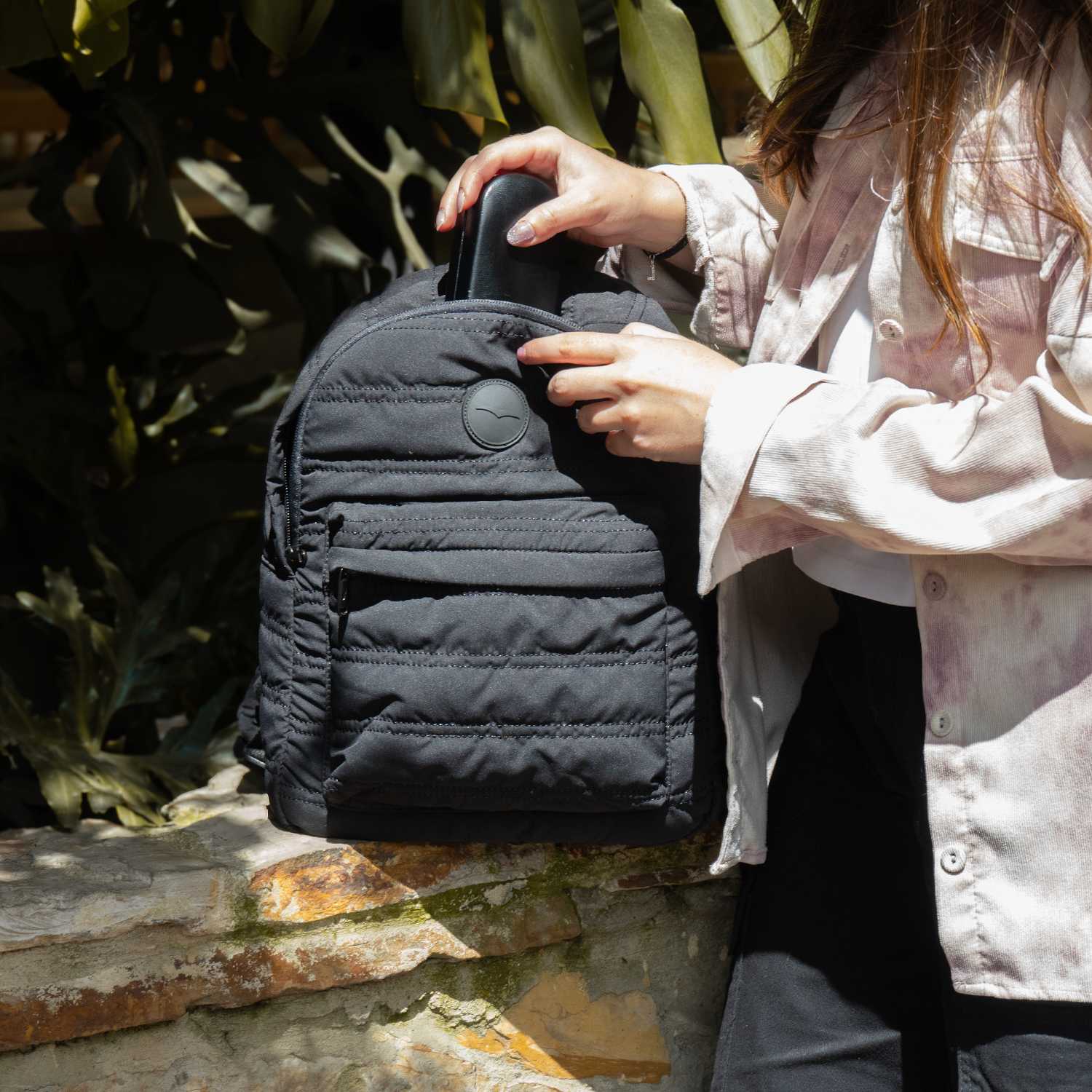 Este morral mini, ligero y adaptable, es ideal para cualquier ocasión. Equipado con un compartimento para tu PC (13’’), un organizador interno con cremalleras y un bolsillo adicional que puedes usar para una botella o una sombrilla, este morral te ayudará a mantener tus pertenencias seguras y ordena- das. Su diseño funcional está hecho para ser tu aliado perfecto cada día.